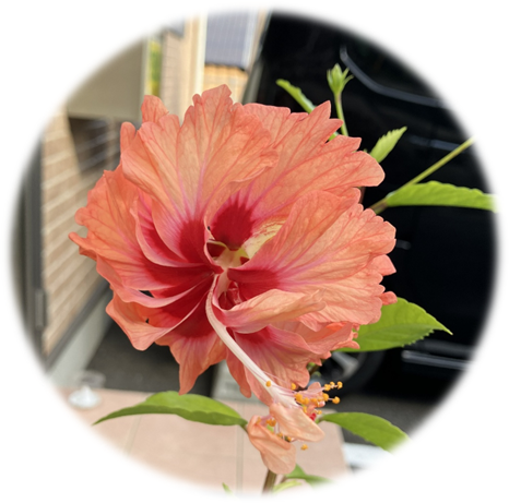 朝晩の寒さが増してますが、今日も元気にハイビスカスが咲いています。